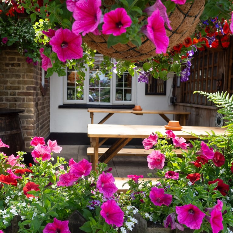 Step into a space where nature takes centre stage and every corner is alive with colour. Pub in Bloom: Seasonal Garden Imagery is a photographic series capturing the unique atmosphere of a local pub garden at the height of the season, when hanging baskets overflow, climbing vines weave rich green canopies, and rustic wooden seating invites visitors to relax and unwind.
